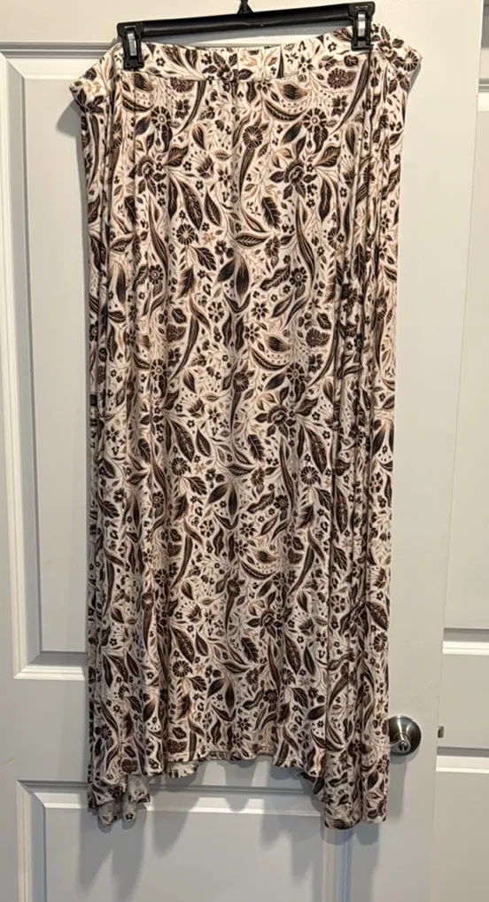 White, cream, tan, and black design No tag (it tickled my back — sorry!) A-line style (no slit) Wa... Show more