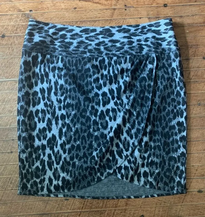 Lane Bryant cheetah print, black and gray, knit, faux wrap, business casual pencil skirt. Great for... Show more