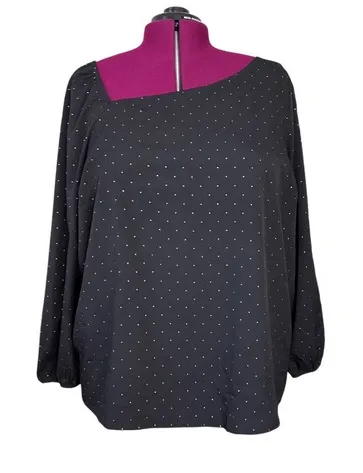Lane Bryant Black Polka Dot Flowy Asymmetrical Neck Blouse sz 24 NWT. Slinky and flowy Blouse with d... Show more