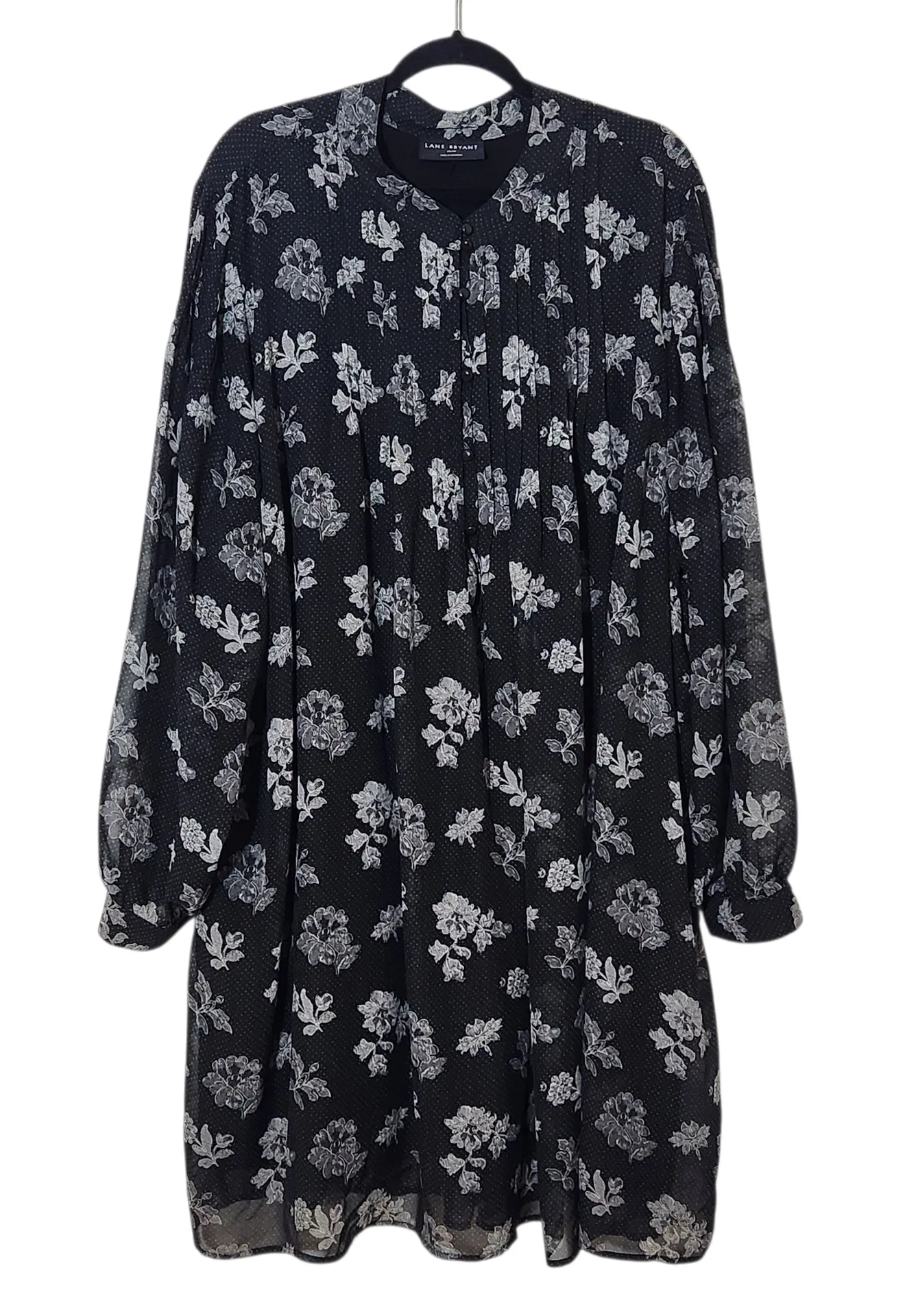 Lane Bryant black and white floral dress with half-button styling, lining, and pintuck details. Slee... Show more