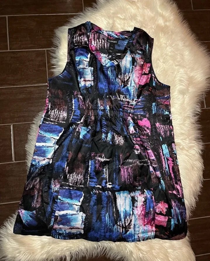 Lane Bryant colorful Sleeveless tunic dress Lagenlook dress sz 16 measurements in photos Pre o... Show more