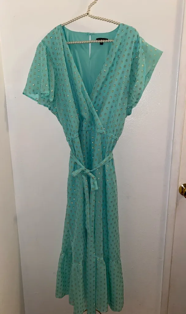 Lane Bryant gorgeous women’s plus size 24p teal Polk a dot midi wrap dress - $15 - From Julia