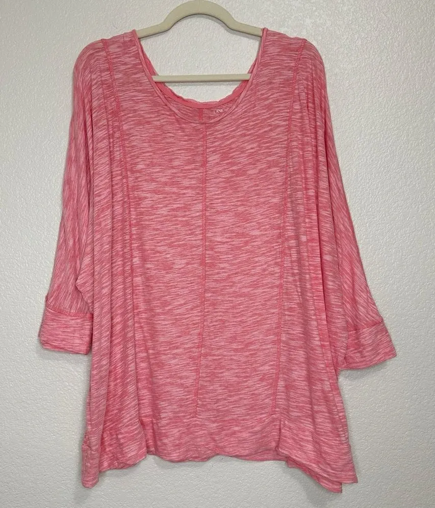 Size: 26/28 Color: Pink - Pullover Style - Scoop Neck - Bat Wing Sleeves - Heather Pink - Relaxed F... Show more