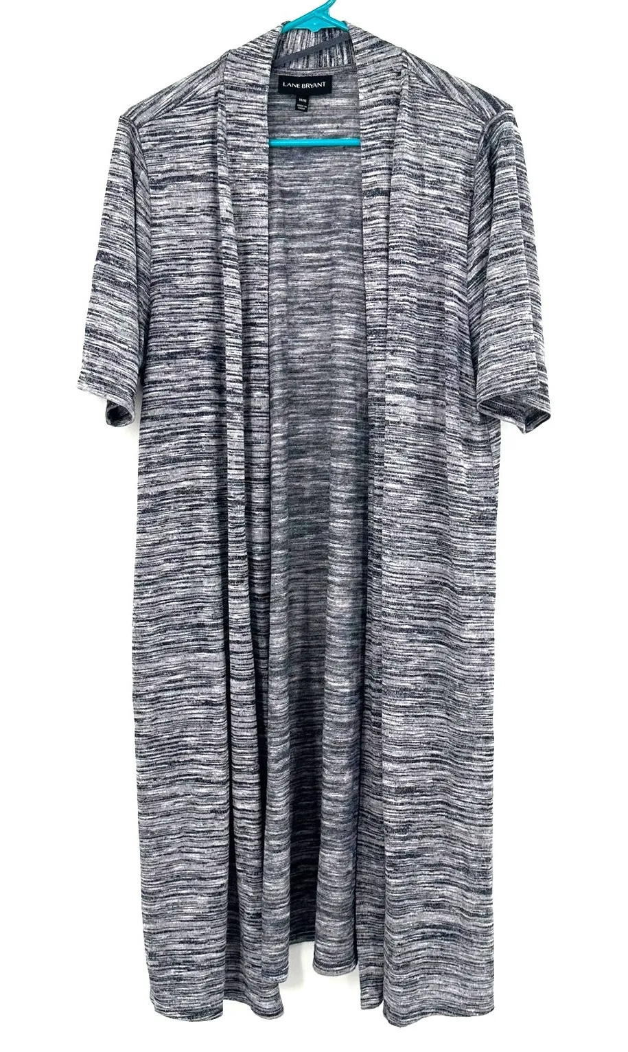 Lane Bryant Size 14/16 Cardigan Gray Heathered Short Sleeved Duster Long Light Split Hem