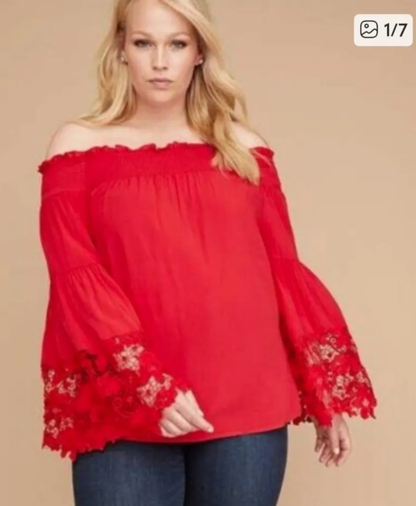 This Lane Bryant blouse combines elegance and comfort with its vibrant red hue and intricate lace be... Show more