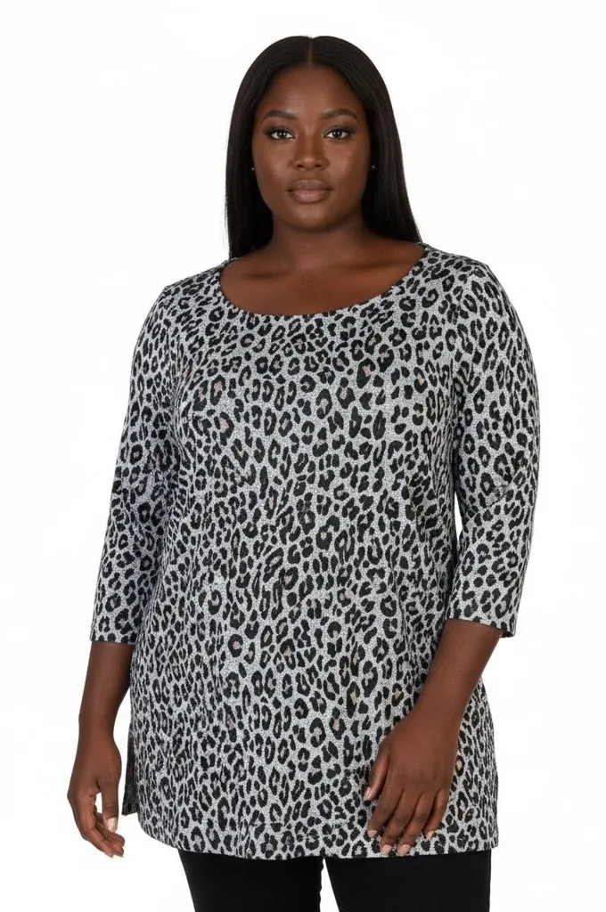 Stretch Knit Soft Oversized Round Neck 3/4 Sleeves Casual/Fitted Sleeve Leopard Print Side Slit 76%... Show more