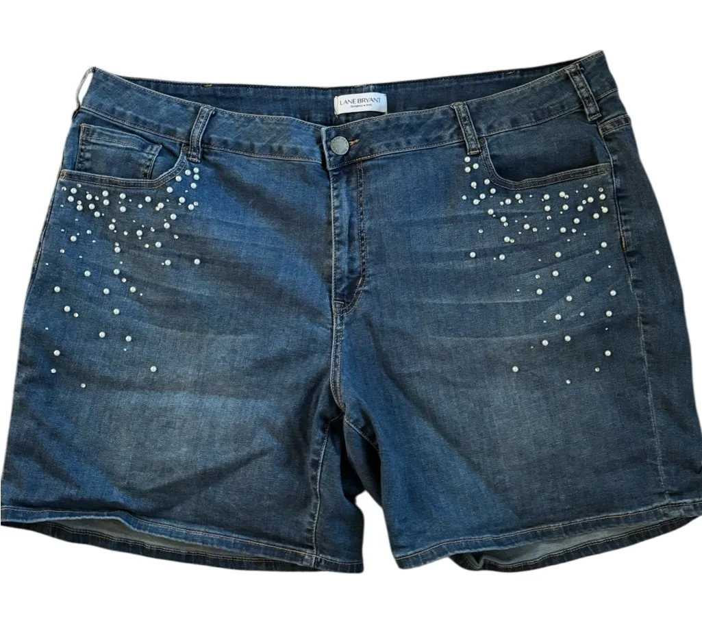 Lane Bryant Mid ~Rise Girlfriend Essential Stretch Short Sz 26 (4X) Plus Pearl Detail Button zip clo... Show more