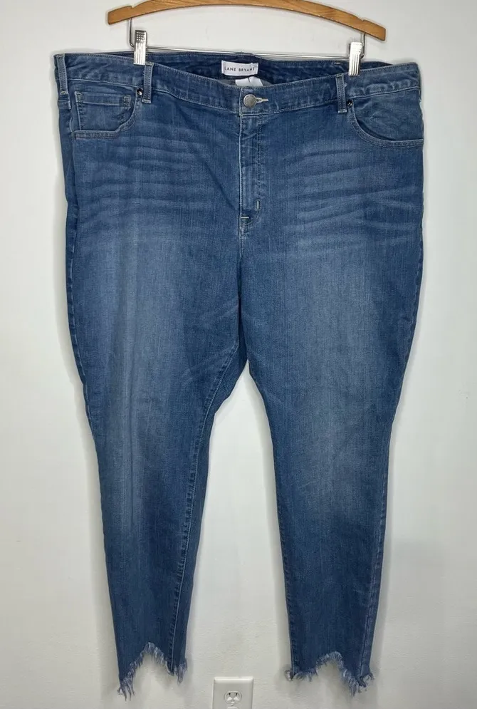 Lane Bryant mid rise skinny jeans signature fit size 26 plus size Raw hem Has a small flaw o... Show more
