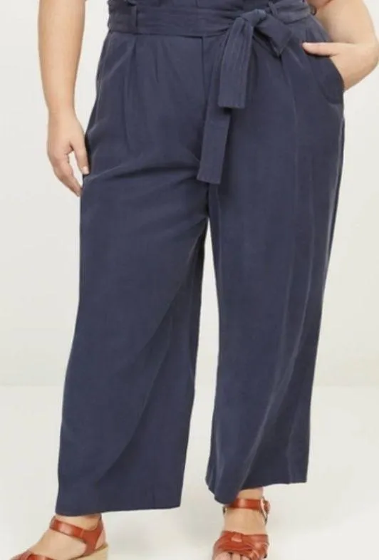 Navy blue paper bag waist belted pants. Tie waist detail, straight legs. $69.95 retail. Size: 24... Show more