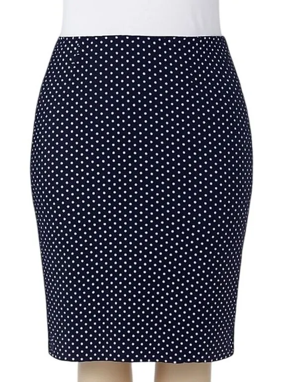 Command attention in this classic navy pencil skirt, adorned with a charming white polka dot pattern... Show more