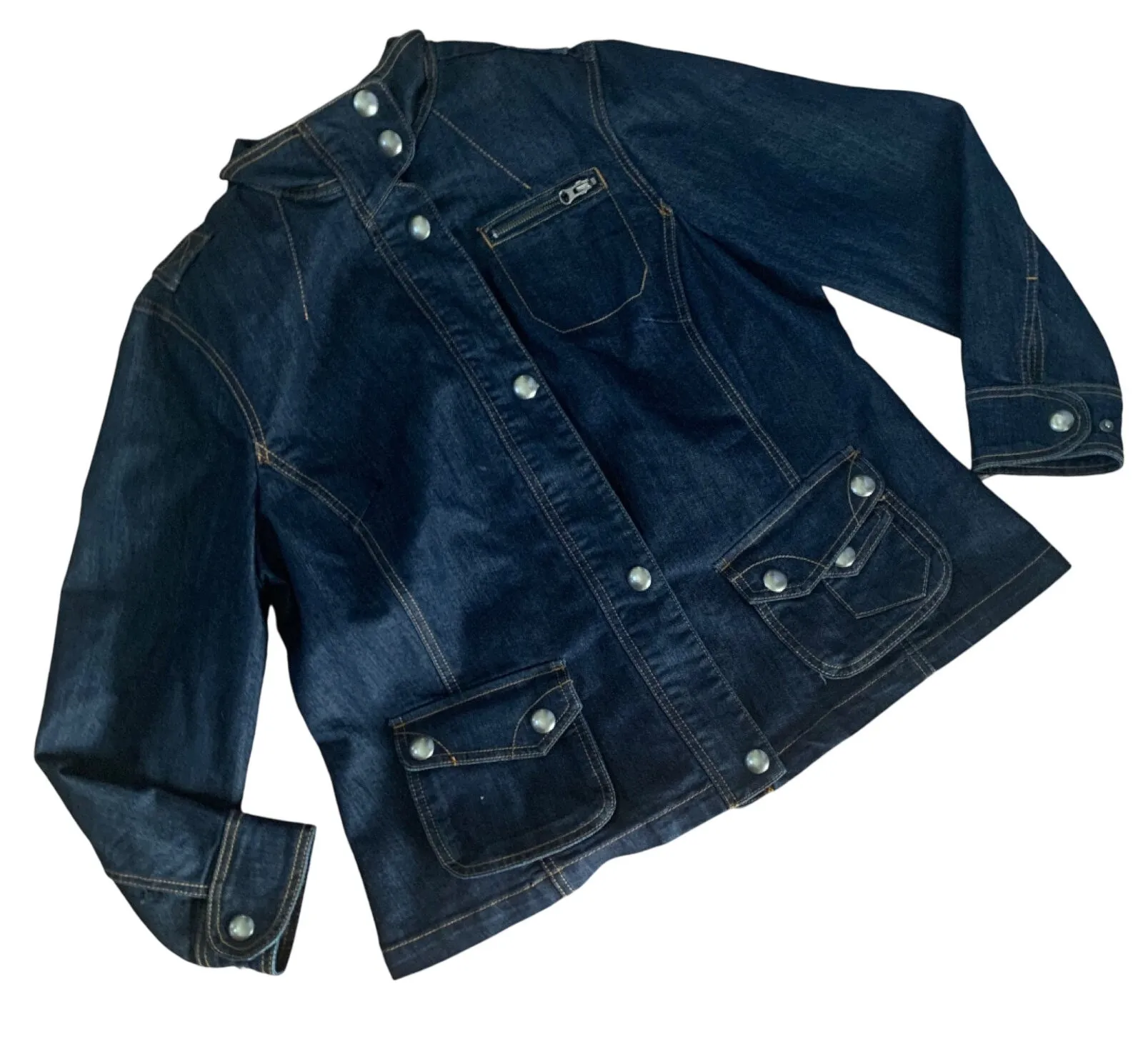 Lane Bryant dark wash denim jacket Woman’s size 14/16W Like new condition Button and zip closure Fu... Show more