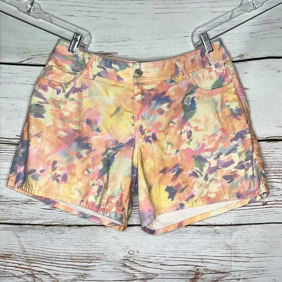 Lane Bryant Size 16 Abstract Floral Print Jean Shorts. Button with Zipper Closure. 5 Pockets. Cotton... Show more