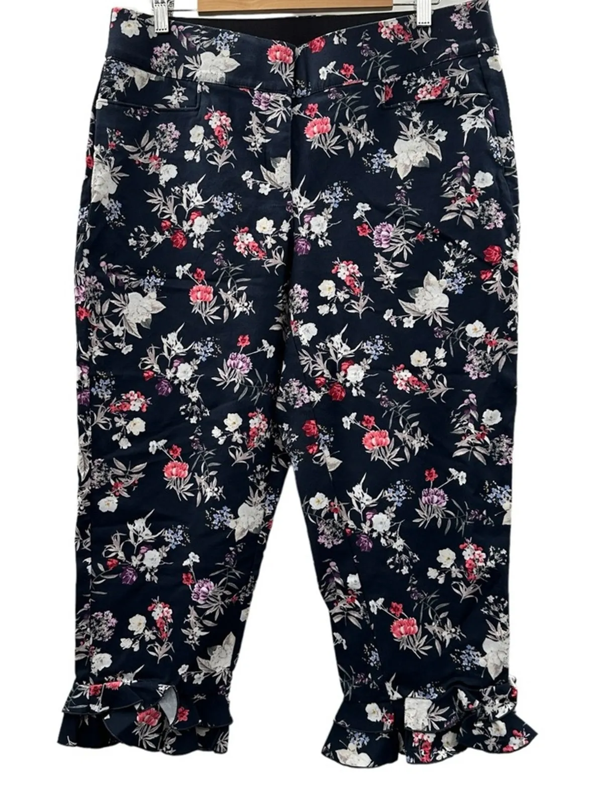 Lane Bryant The Allie Navy Blue Multicolor Floral Ruffle Cropped Pants A chic and vibrant addition... Show more