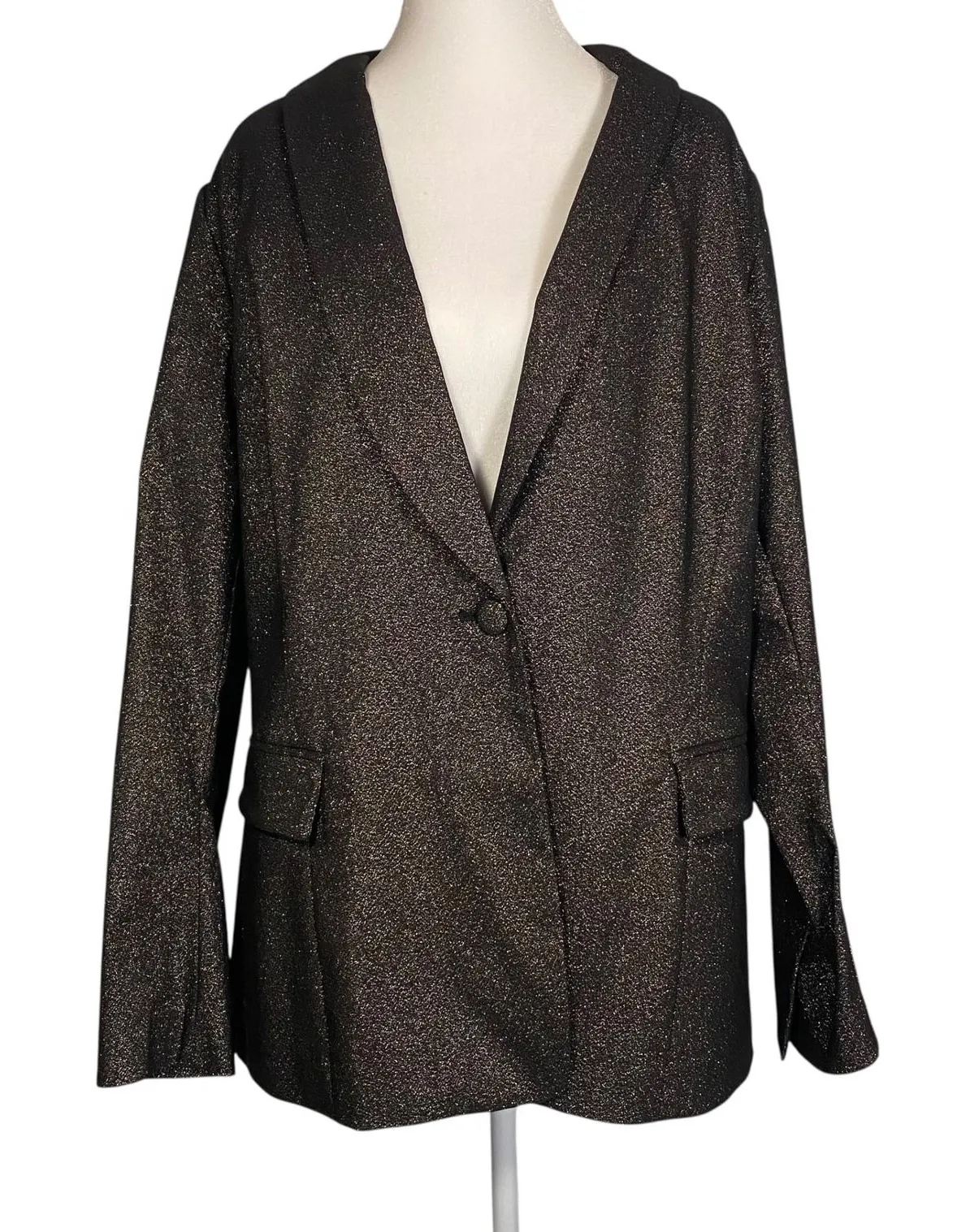 Keywords: Lane Bryant, The Bryant Blazer, Sparkle Blazer, Career Jacket, Party Blazer, Occasion Jacket, Plus Size Blazer, Womens Blazer, Size 16, Black and Gold Blazer, Shimmer Jacket, Evening Blazer, Special Occasion