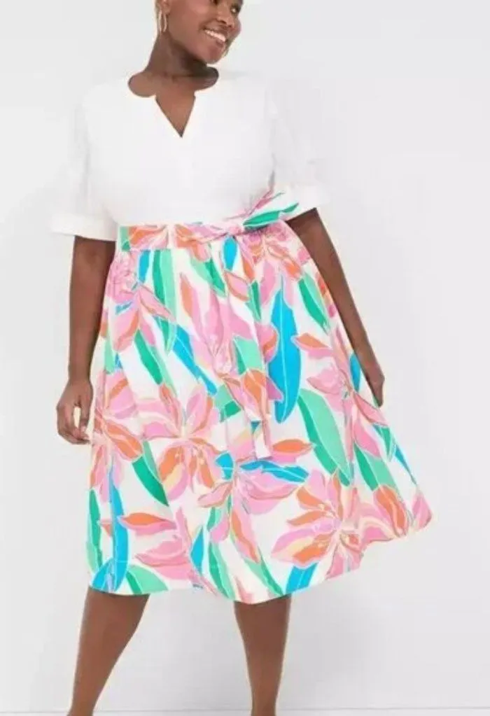 Brighten your wardrobe with this vibrant floral skirt. Featuring a stunning mix of pink, green, and... Show more