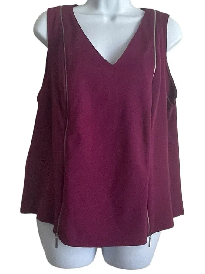 Lane Bryant Women Tunic Top 14/16 Wine Stretch Unique Zipper Detail Futuristic Great Pre-Owned Condi... Show more