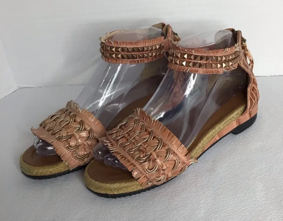 Step into style with these brown leather espadrille sandals from Lanvin Collection by Luxury Fashion House. Featuring a zip closure at the back and accents of metal, these sandals are the perfect addition to any outfit. The flat heel style and under 1 inch heel height make them comfortable for all-day wear. Made of high-quality leather, these sandals are durable and stylish. With sizes ranging from UK 6.5 to US 9, these sandals are perfect for women who love to make a statement with their footwear.
