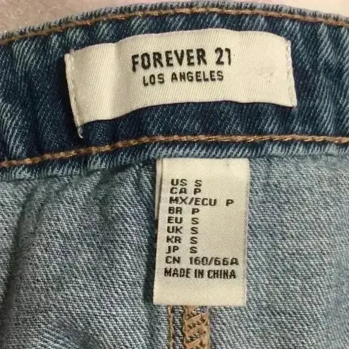 Blue woven denim mini skirt. A-line. Has 2 pockets. Waistband with no belt loops. Full button placke... Show more