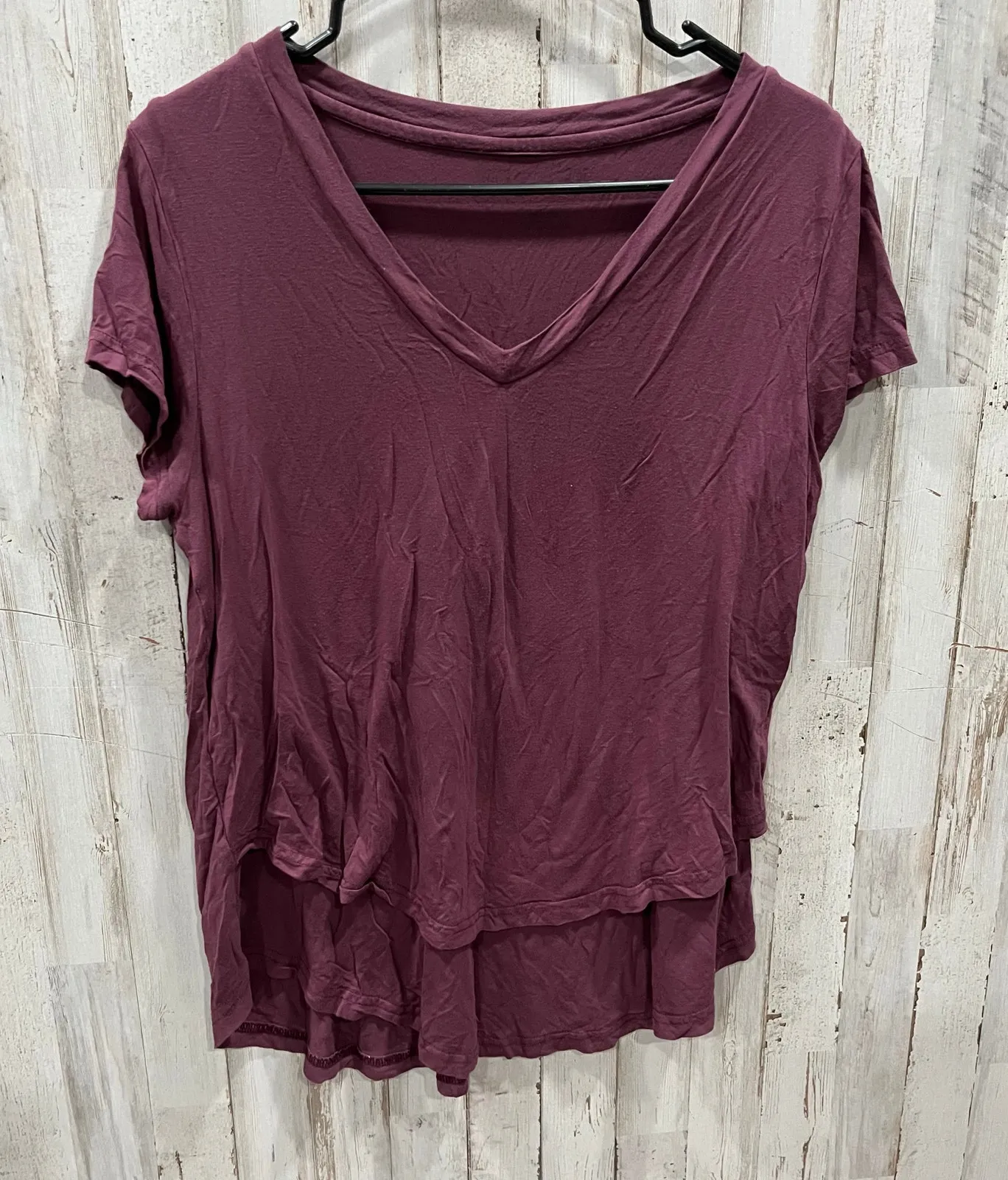 Latched Mama Boyfriend Breastfeeding T-Shirt! This V-neck tee in burgundy is perfect for nursing mamas. While it shows signs of wash wear and is in fair condition, it's still got plenty of life left. Perfect for everyday wear, Features a comfortable and flattering fit, v-neck design, and easy access for nursing.