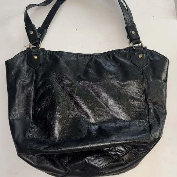 LATICO BLACK LEATHER SATCHEL BAG BRASS HARDWARE ZIPPER COLSURE WITH SNAP POCKET - $60 - From Nancy