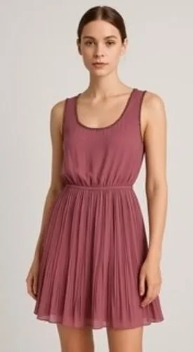 Chic sleeveless pink dress with a delicate chain-embellished neckline. This dress features a flattering elasticated waistband that cinches the silhouette, flowing into a beautifully pleated skirt that creates a charming fit and flare shape. The lightweight fabric drapes elegantly, making it perfect for a garden party, a casual wedding, or a stylish brunch. Great Pre-Owned Condition (see pics for details) Measurements: armpit to armpit 17.5 in, waist side to side 12 in, length 33 in. designer, luxury, colorful, boho, bohemian, whimsical, dainty, romantic, cottagecore, cottage, fit and flare, fit & flare, mini, festival, hippie, chic, Romance, Date, Love, sexy, romantic, Party, Feminine, vacation, cruise, travel, beach, Trendy, Holiday, wedding, cocktail, graduation, shower, reception, Romantic date nights, weddings, glam functions and events, champagne bars, Vacay, Vacation, Cruise, Cruisewear, Size 4, Size 6, preppy, retro,