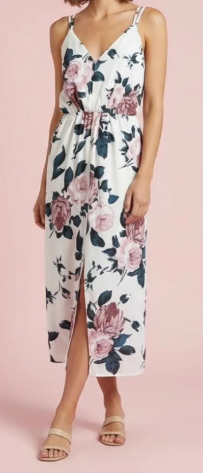 L’Atiste White Floral Sleeveless Midi Dress S ~ Super cute and lightweight, this dress features a v-... Show more
