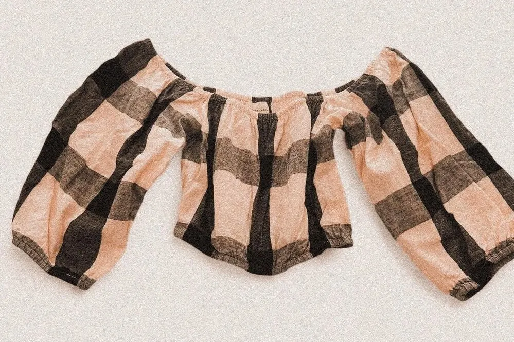 Laude the Label 100% Cotton Checkered Off-Shoulder Puff Sleeve Top – Cottagecore Slow Fashion (Size... Show more