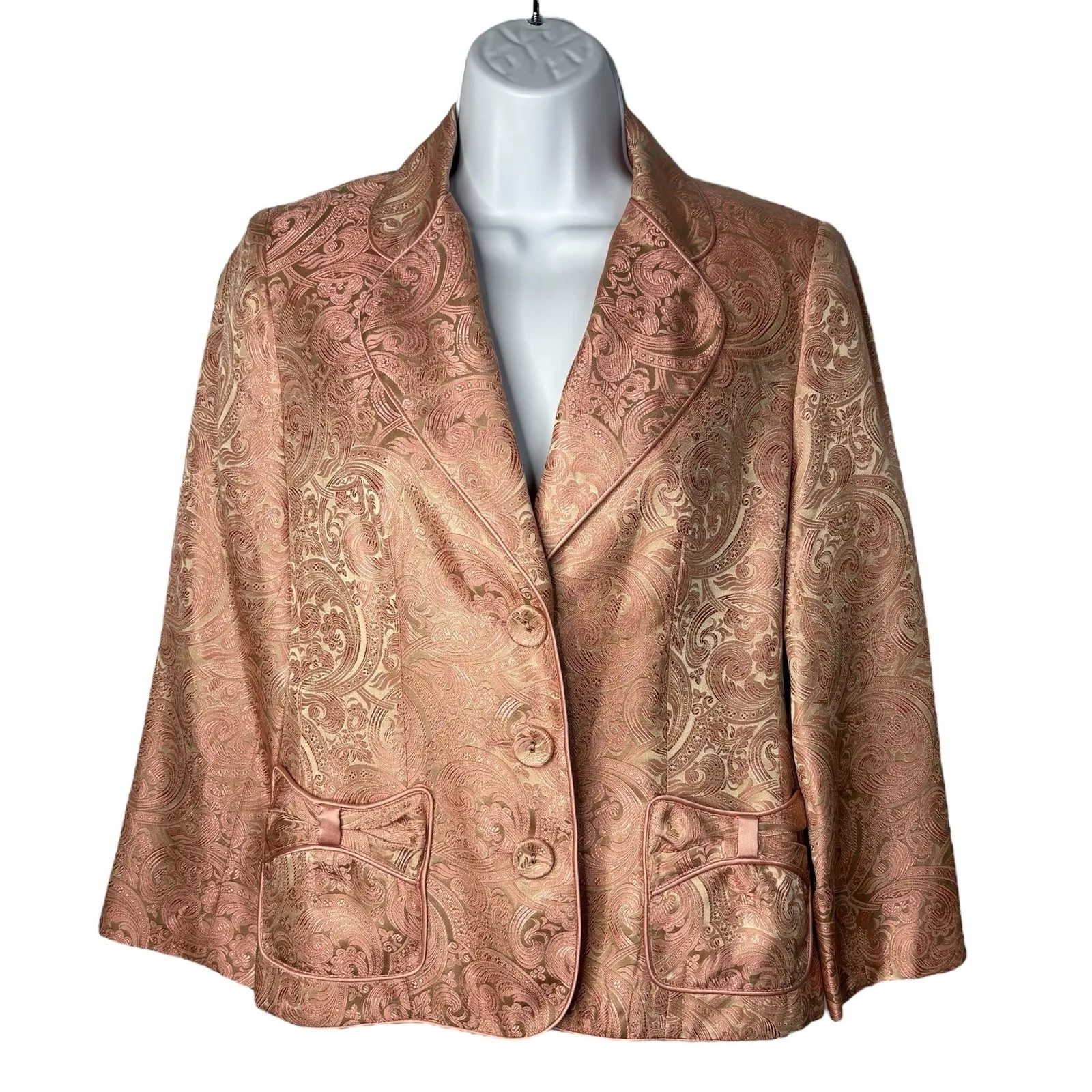 All orders shipped next business day. Laundry by Shelli Segal Blazer Jacket Pink Gold Paisley Broca... Show more