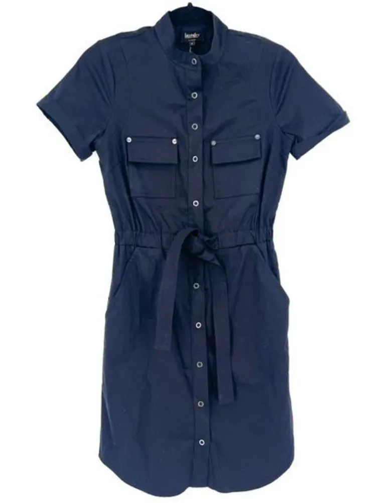 Laundry Women's Midi Shirt Dress Tie Waist Snap Button Pockets Black Size 0 Brand: Laundry Department: Women's Size: 0 Color: Black Style: Midi Shirt Dress Neckline: High Neck Sleeve Length: Short Sleeve Pattern: Solid Closure: Snap buttons, tie waist Material: Cotton / Nylon / Spandex Condition: Features: Snap button closure Tie waist detail Multiple pockets Cuffed short sleeve Approximate Measurements Pit to pit 16.5" Length 34" Smoke-Free Home