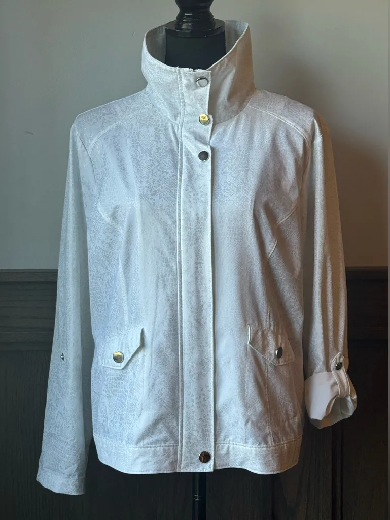 Laura Ashley Fashion Jacket White & Silver Snake print petite large Size undefined - $31 - From Cari
