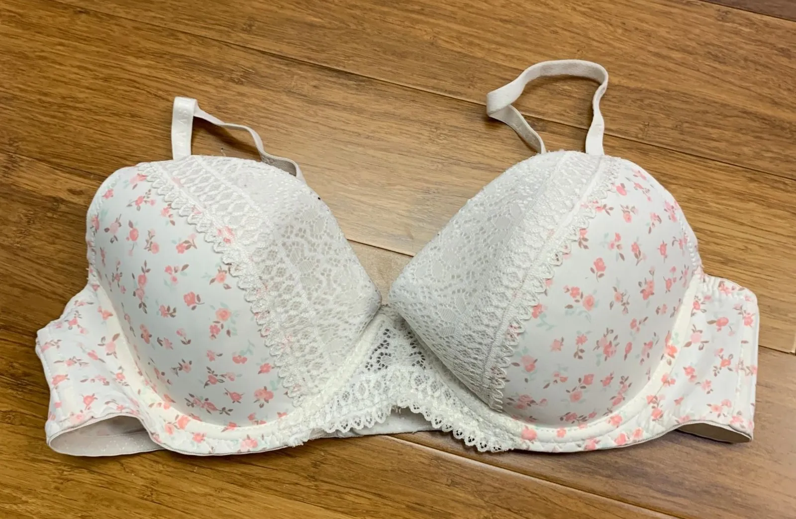 A charming and supportive bra, perfect for everyday wear. This bra features a delightful floral pattern in pink hues, set against a crisp white backdrop. The cups are adorned with delicate lace trim, adding a touch of elegance. Designed with padded cups and underwire support, it offers a comfortable and flattering fit. Keywords: Laura Ashley, Floral bra, Lace bra, Padded bra, Underwire bra, White bra, Pink bra, 36C bra, Women's bra, Lingerie, Comfortable bra, Everyday bra, Designer bra, Floral lingerie Very good used condition. Open to offers!