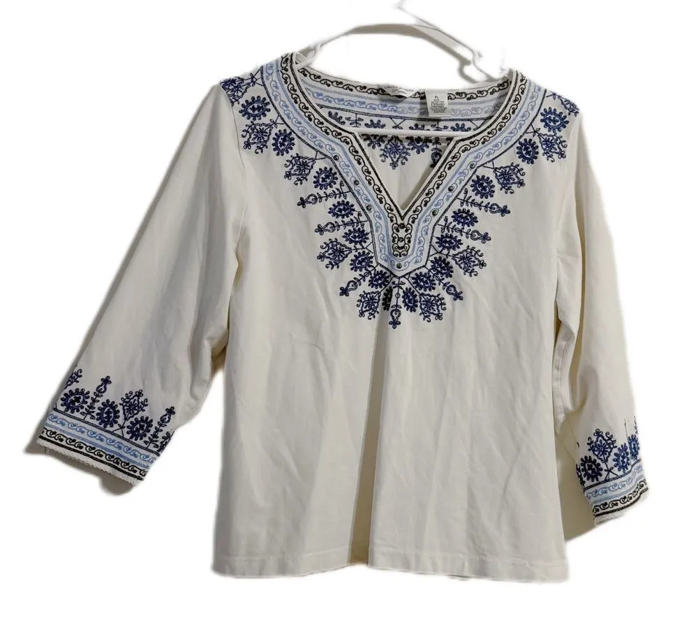 Laura Ashley White Blouse with Blue‎ Embroidery Size undefined - $21 - From Christina
