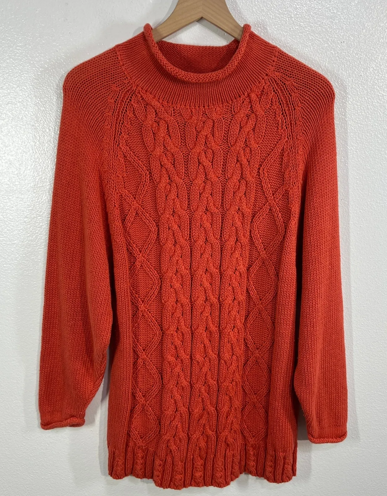 Measurements: • Length: ~30 inches • Chest (Pit to Pit): ~21 inches Vintage Laura Tyler Cable Knit Sweater, circa late 1980s–early 1990s. Era: 1988–1994 (Vintage) Color: Red Orange Size: Medium Fabric: 55% Ramie, 45% Cotton Condition: Excellent vintage — no snags, stains, or stretching Laura Tyler | vintage sweater | cable knit | 80s style | mock neck | red orange | ramie cotton | chunky knit | Hong Kong tag | retro knitwear | fall fashion | cozy sweater | women's mediumr I ship out items Monday-Friday. • All items come from a pet-free, smoke-free home. • Please compare the measurements to something you already own. Thank you for visiting my store.