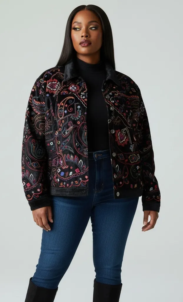 Laura Ashley Women's Paisley Embroidered Velvet Jacket black multi Size 2X - $40 - From Kaleidoscope