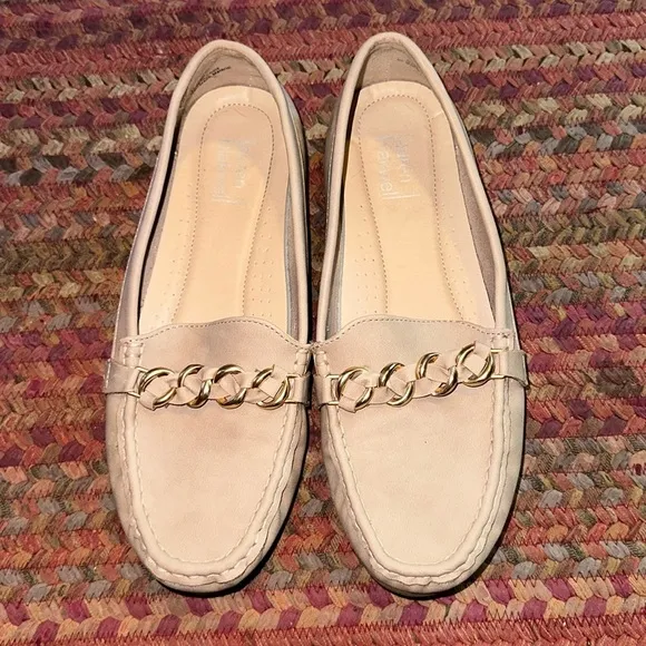 LAUREN BLAKWELL LIZBETH TAUPE CREAM LOAFERS GOLD CHAIN DETAIL Size 9 - $11 - From Sausy