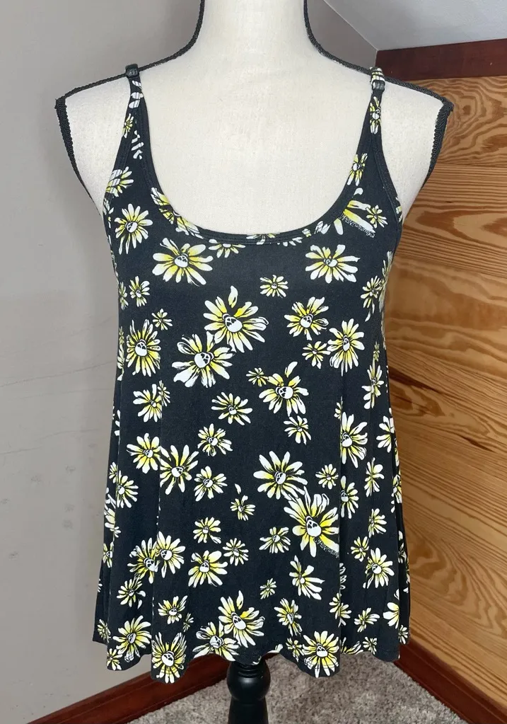 Minor wash wear Size XS 100% micro modal Pit to pit 15.75” and length from bottom of strap 20” front and approx 22” back measurements in pics Adjustable straps Low cut back Color: black, yellow, white Made in limited quantities in the USA Halloween, bones, head, heart eyes, scoop neck, spaghetti strap, goth, gothic, dark, punk, summer, hot weather, travel, vacation, beach, beachy, revolve, limited edition, Y2K, 90s