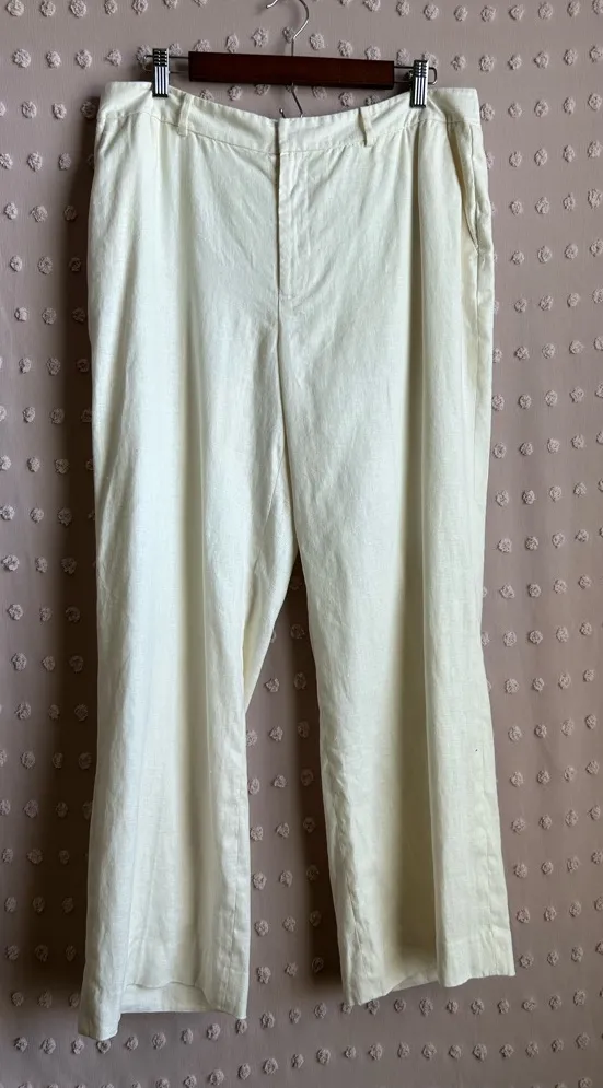 Lightly worn - no pilling or fading 100% linen Waist 17.5” Rise 11.5” Inseam 28”