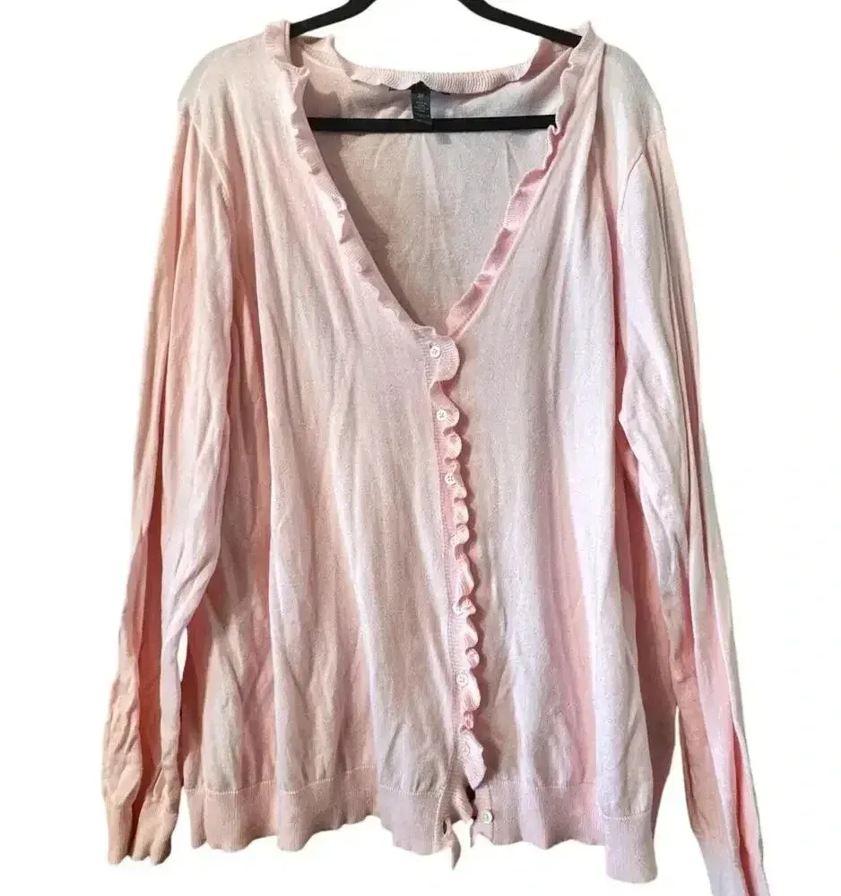 Lauren Ralph Lauren 2X Pink 100% Cotten ruffle trim cardigan preppy classic - $31 - From Heather