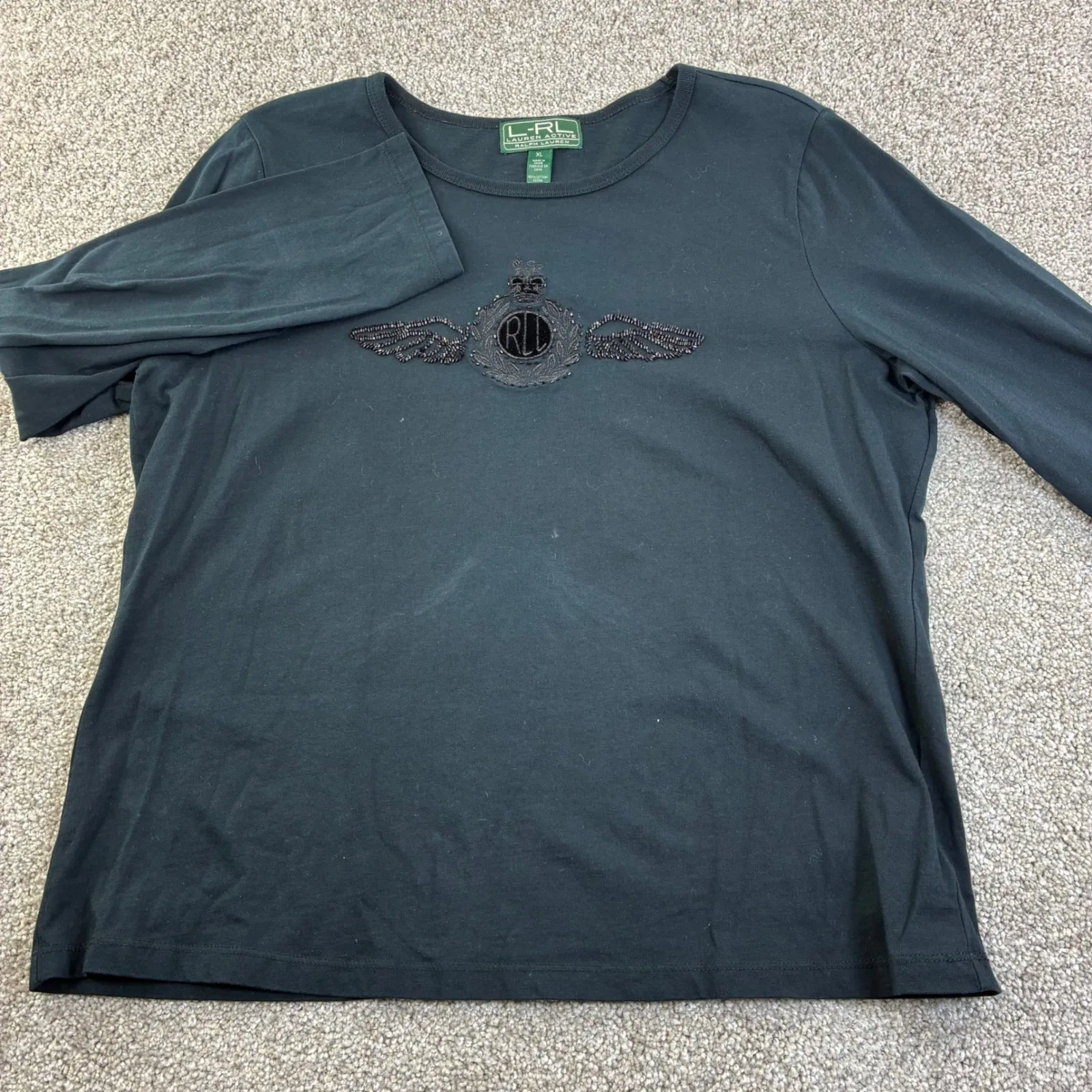 The shirt is in excellent used condition. Measurements: • Pit to Pit: 21 in • Length: 25 in • Sleev... Show more