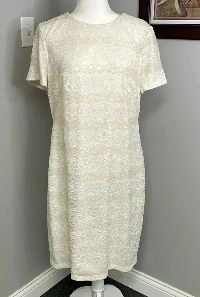 Lauren Ralph Lauren Beige Mono Neutral Lace Sheath Dress Size 16 Womens Stunning White - $34 - From Bri
