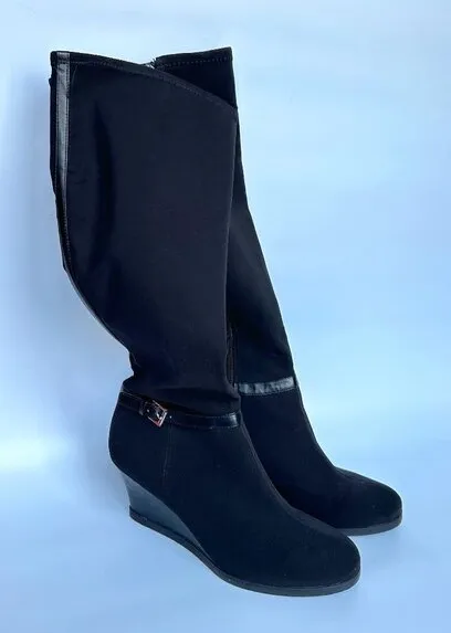 Lauren Ralph Lauren Black Tula Knee High Wedge Heel Boot Riding Boot Size 10 Pre-Owned in Great Cond... Show more