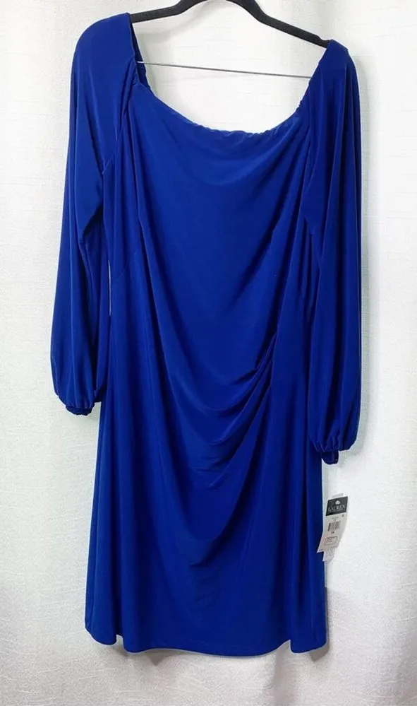 Lauren Ralph Lauren blue ruched long‎ sleeves boat neck jersey dress size 16 - $57 New With Tags - From Snob