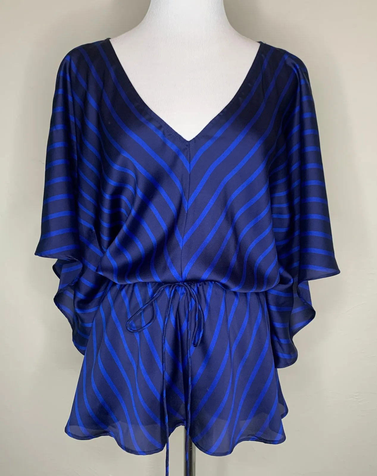 Blue Striped Blouse Flutter Sleeve labeled a Small Medium , check measurements for fit Lauren Ralph... Show more