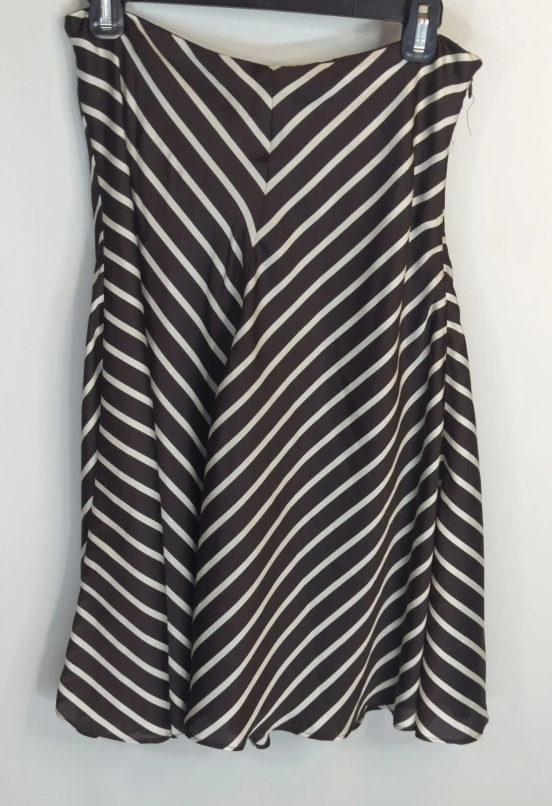Pre-Loved In excellent condition Side Zipper Closure Mermaid Silhouette 100% Polyester Color: Brown & White Chevron Striped Print Size: 2 Tags: Casual, Sunday, Professional, Business, Office, Workwear, Classy, Elegant, Classic, Modest, Brunch, Dinner, Modesty, Romantic, Feminine, Pretty, Career, Ontrend, Trend, Ontrend, Wmns, Corporate, Corp, Corporate, Career, LRL