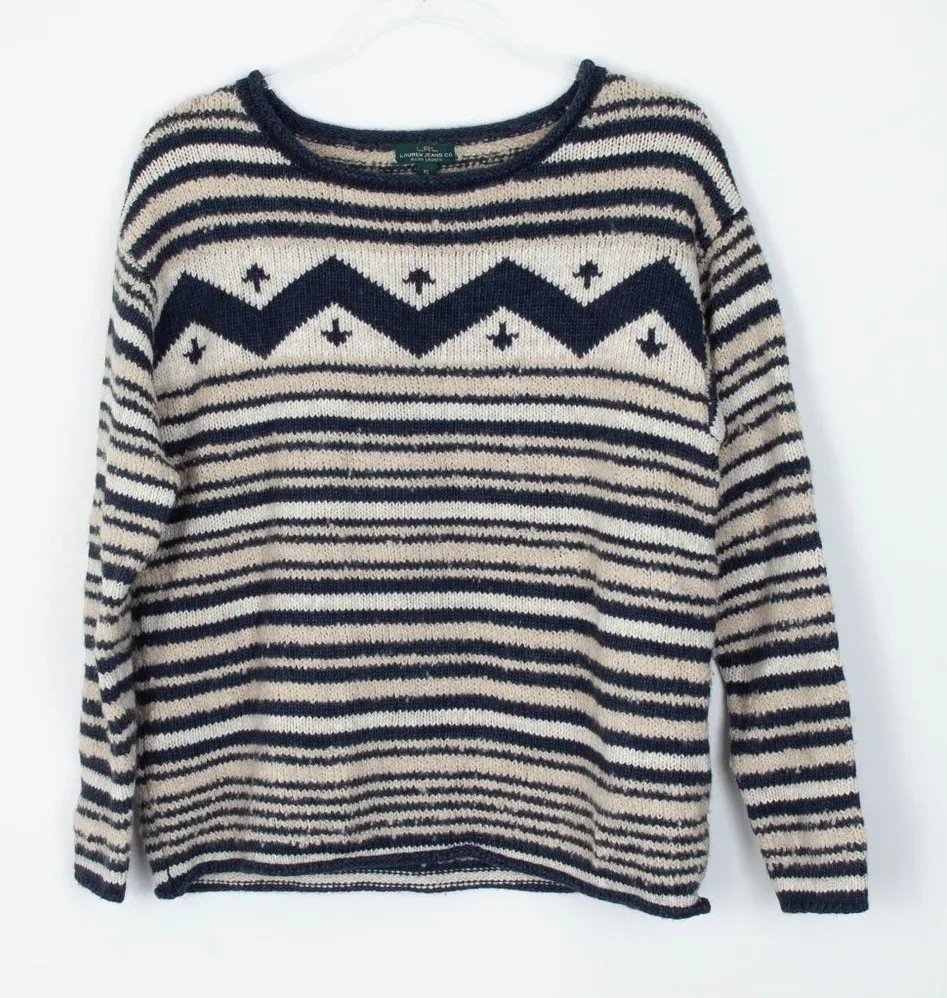 Lauren Ralph Lauren Chevron Striped Wool Blend Sweater Size XL Fair Isle Nordic Approximately 22" p... Show more