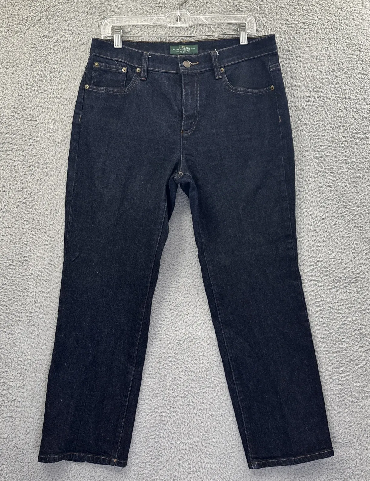 Mid rise Zipper fly, button closure 5 pocket style Straight leg Dark wash Preowned. Gently used wit... Show more