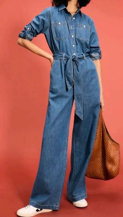 The Lauren Ralph Lauren Criselda Jumpsuit offers a sleek, modern silhouette with a flattering, fitted design. Pair it with heels and minimal accessories for a refined, effortless look. Materials and Measurements Blue (100% Cotton). Jumpsuit. Collared. Long Sleeves. Button front closure.