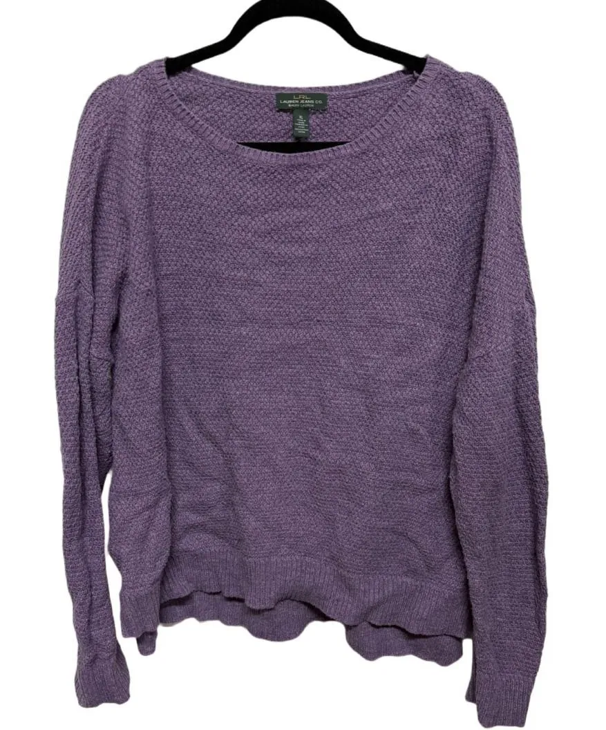 Gently worn No stains or noticeable signs of wear Medium weight purple knit sweater Crew neck lon... Show more