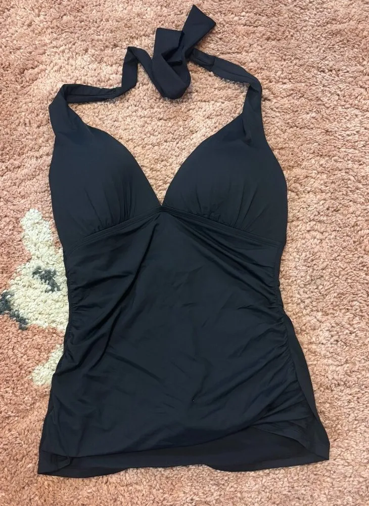 The Lauren Ralph Lauren Halter Tankini Women Swim Top in Solid Black is a stylish and high-quality s... Show more