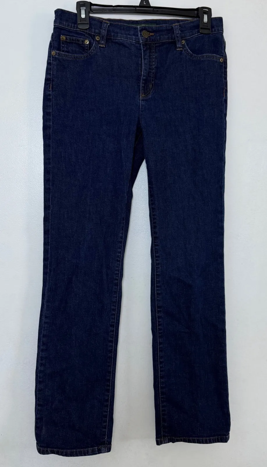 Lauren Ralph Lauren Lauren jeans co. Classic dark wash denim jeans size 6. These jeans from Lauren Jeans Co. feature a traditional five-pocket design, a comfortable classic fit, and a flattering silhouette. Good used condition. Does have some color fading. 98% cotton 2% elastane Measurements approximate: W: 30" R: 9.5" I: 29" Keywords: Lauren Jeans Co., dark wash jeans, denim jeans, classic fit, comfort jeans, womens jeans, casual jeans, five pocket jeans, blue jeans, straight leg jeans